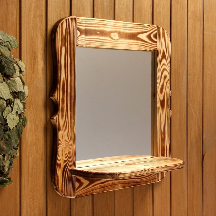 Зеркало для бани и сауны «Резное», 53×53×1.6 см, настенное, с полкой, обожжённое, «Добропаровъ»