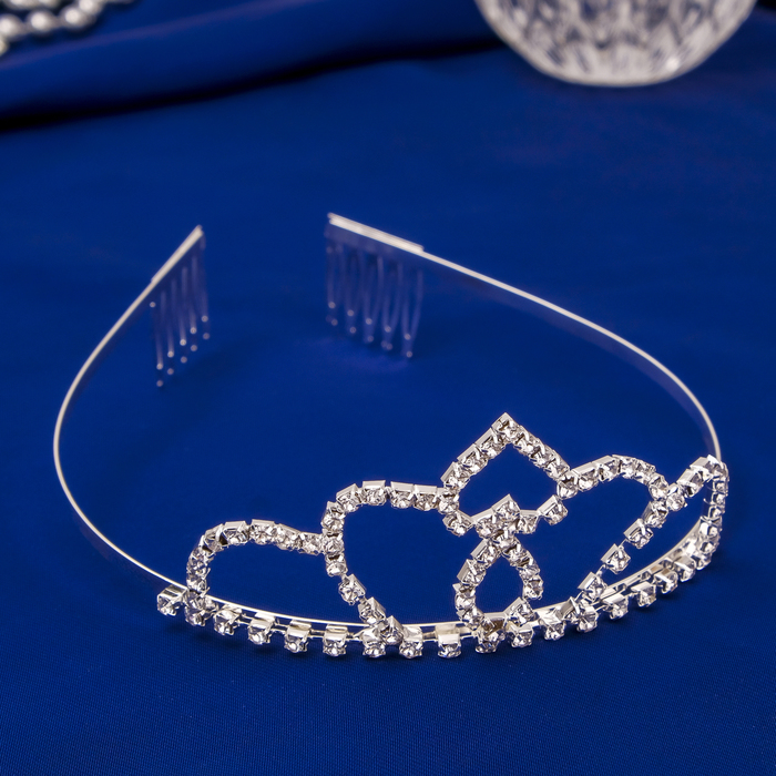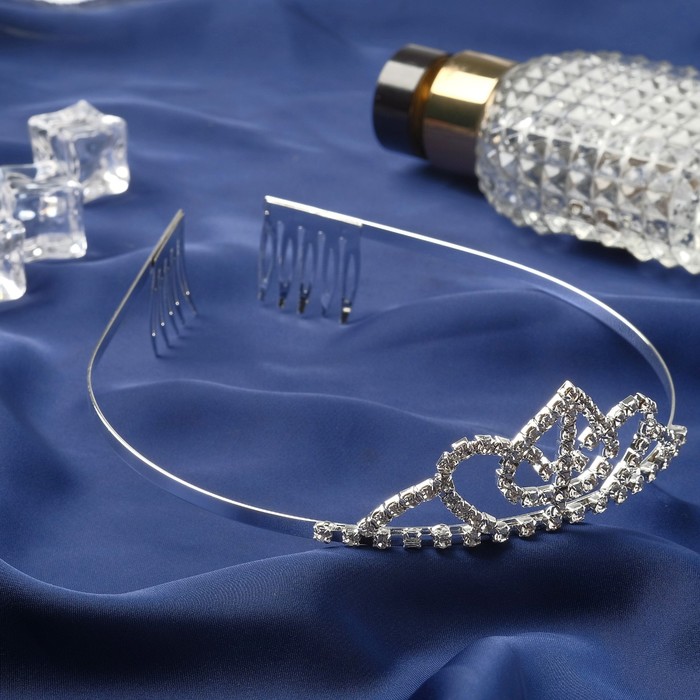 Диадема для волос «Лючия», сердце с каплей, 4.5 см, серебро