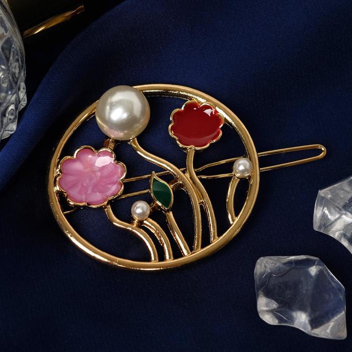 Зажим для волос «Джилли арт», цветы, 6 см, золото