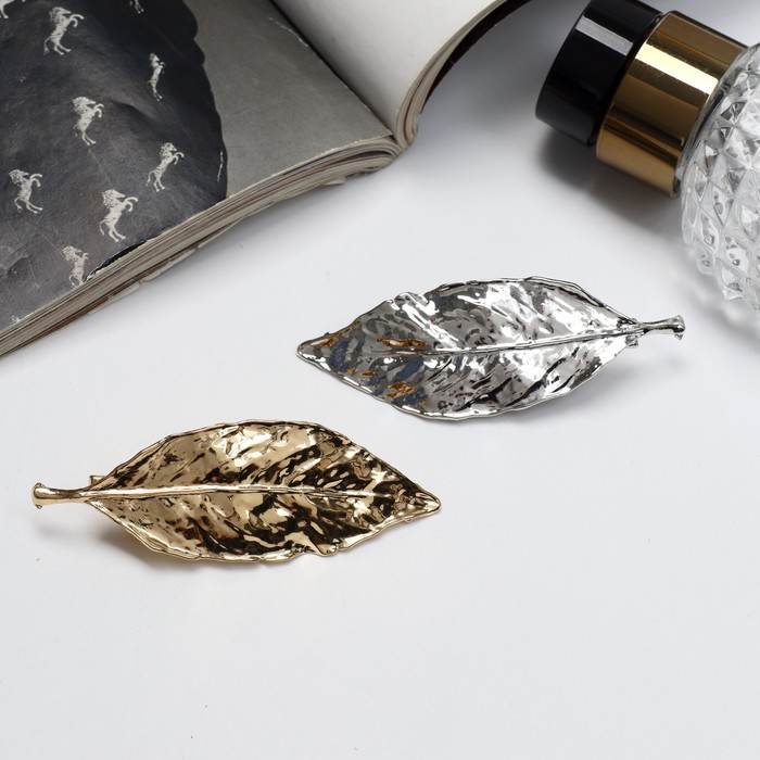 Зажимы для волос QF «Лиен», листики, 7 см, набор 2 шт., серебристо-золотые