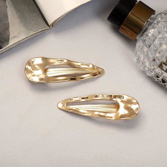Зажимы для волос «Либерти», набор 2 шт., волна овал, 6.5 см, золото