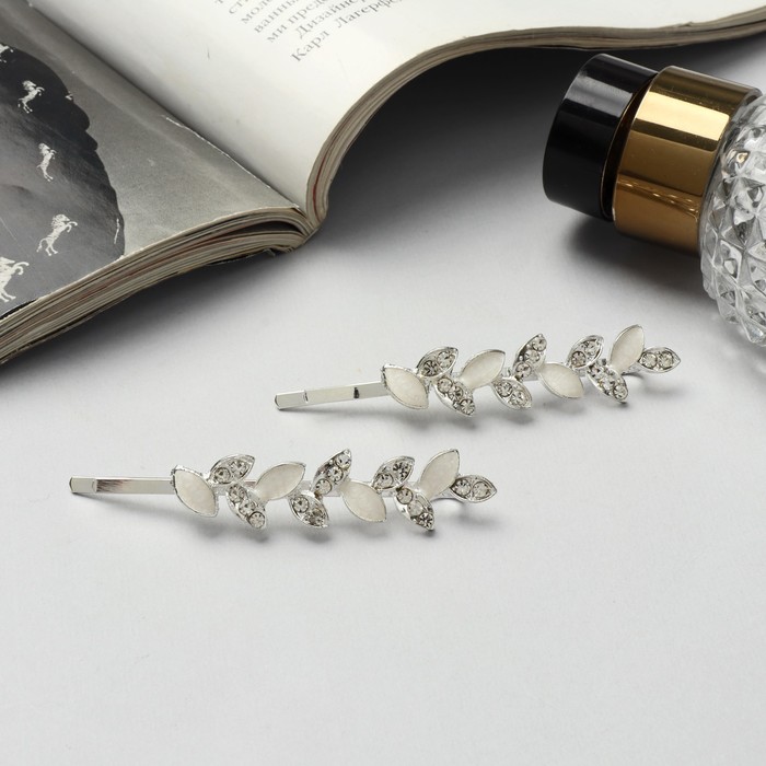 Невидимки для волос «Аннабелль», набор 2 шт., лепесток белый, 6.5 см, серебро