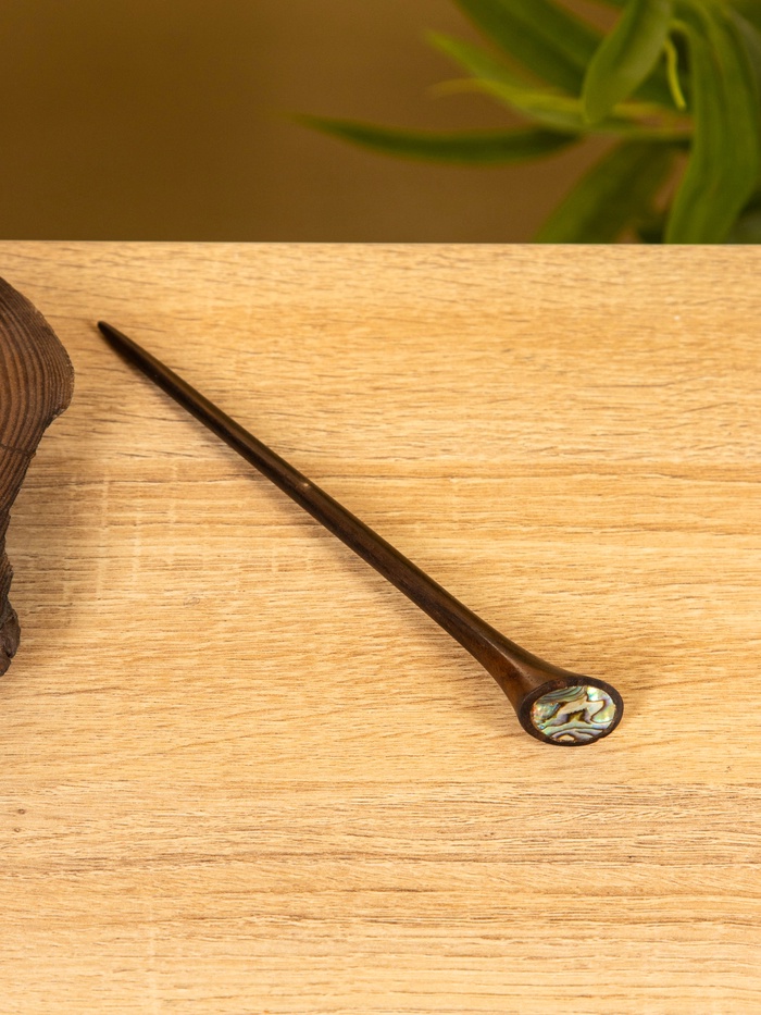 Шпилька для волос, 20 см, дерево Соно, ракушка, тёмно-коричневая
