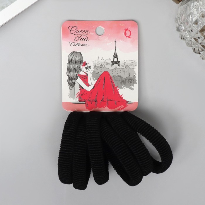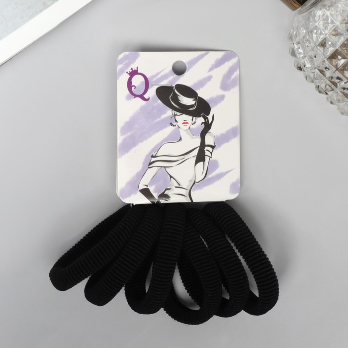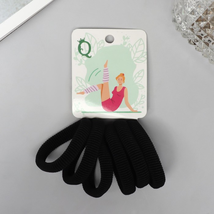 Резинки для волос QF «Вероника», набор 6 шт., гибкость, 4 см, чёрные