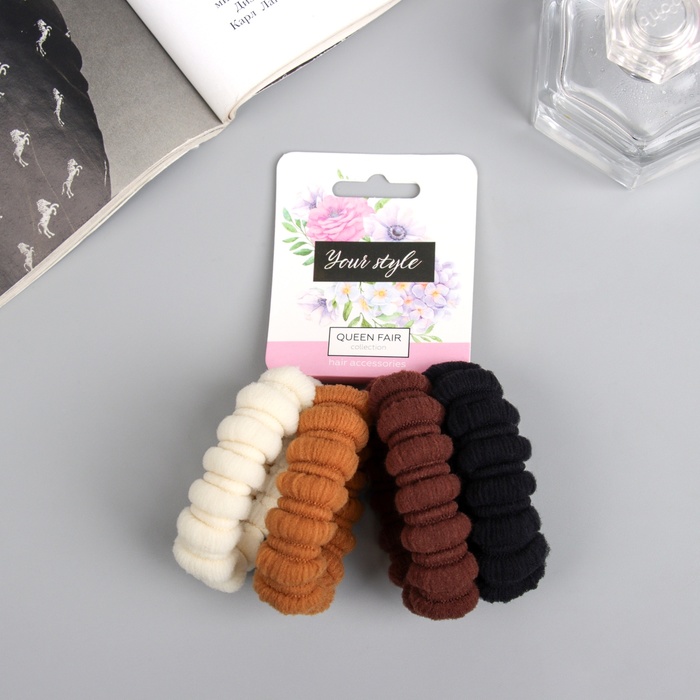 Резинки для волос QF «Лина», набор 6 шт., полосатый орнамент, 4 см, бело-коричневые