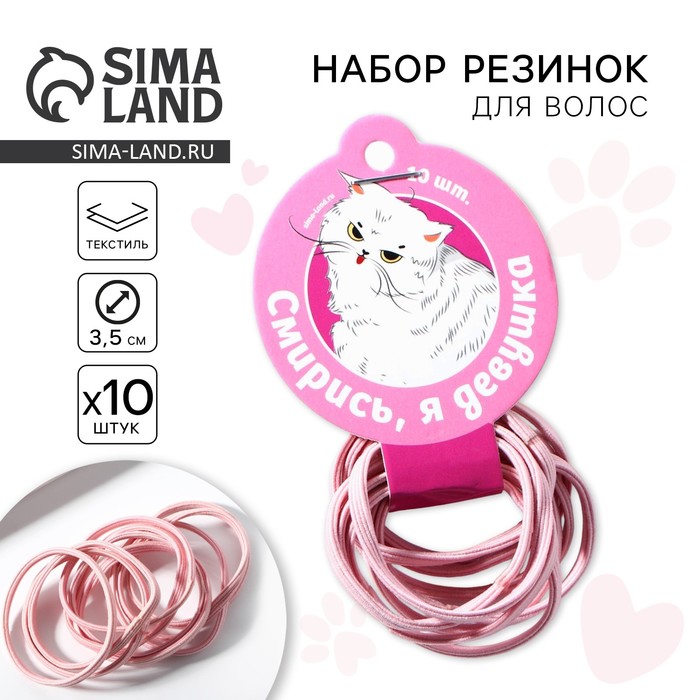 Резинки для волос «Смирись, я девушка» 10 шт., диам. 3.5 см