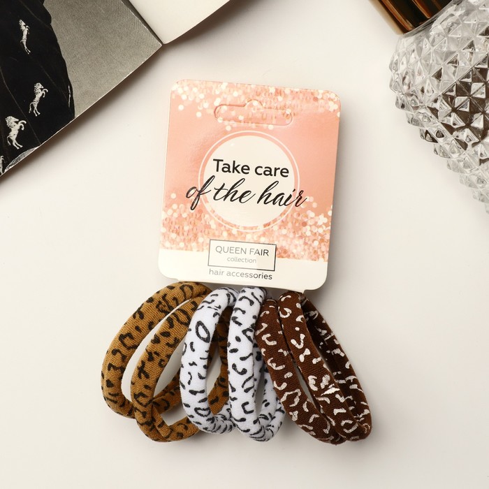 Резинки для волос QF «Спорт шик», набор 6 шт., пятна, 6 см, коричневые