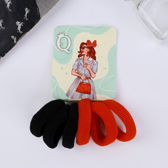 Резинки для волос «Кокетка», набор 6 шт., гламур, 4 см, красные, чёрные