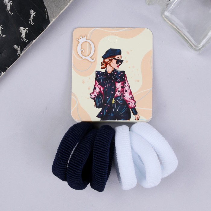 Резинки для волос «Кокетка», набор 6 шт., стиль, 4 см, тёмно-синие, белые