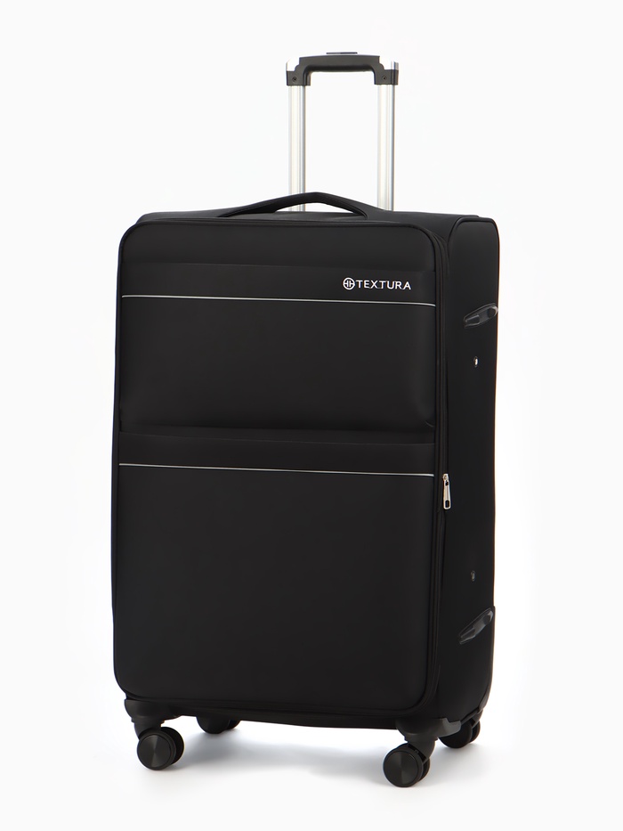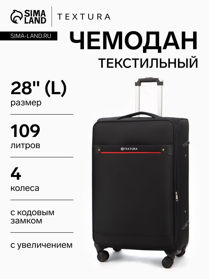 Чемодан на колёсах TEXTURA, 109 л, кодовый замок, текстильный, с увеличением, 47×30×78 см, 28", чёрный