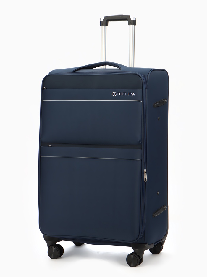 Чемодан на колёсах TEXTURA, 109 л, кодовый замок, текстильный, с увеличением, 47×30×78 см, 28", синий