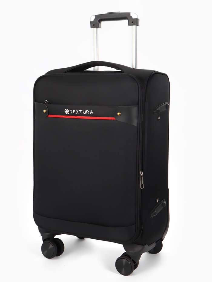 Чемодан на колёсах TEXTURA, 52 л, кодовый замок, текстильный, с увеличением, 36×25×58 см, 20", чёрный