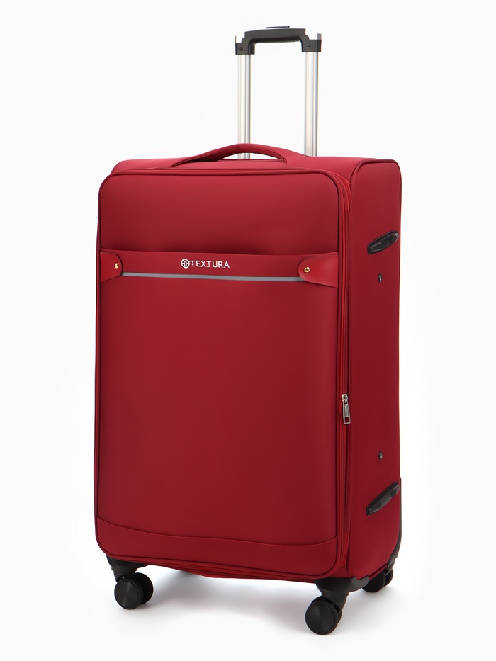 Чемодан на колёсах TEXTURA, 109 л, кодовый замок, текстильный, с увеличением, 47×30×78 см, 28", красный
