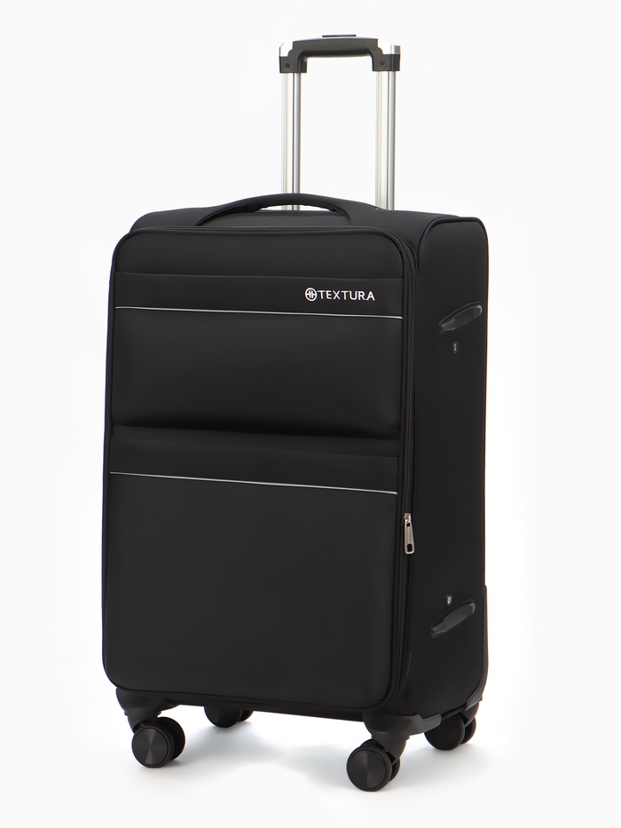Чемодан на колёсах TEXTURA, 74 л, с увеличением, кодовый замок, 42×26×68 см, 24", чёрный