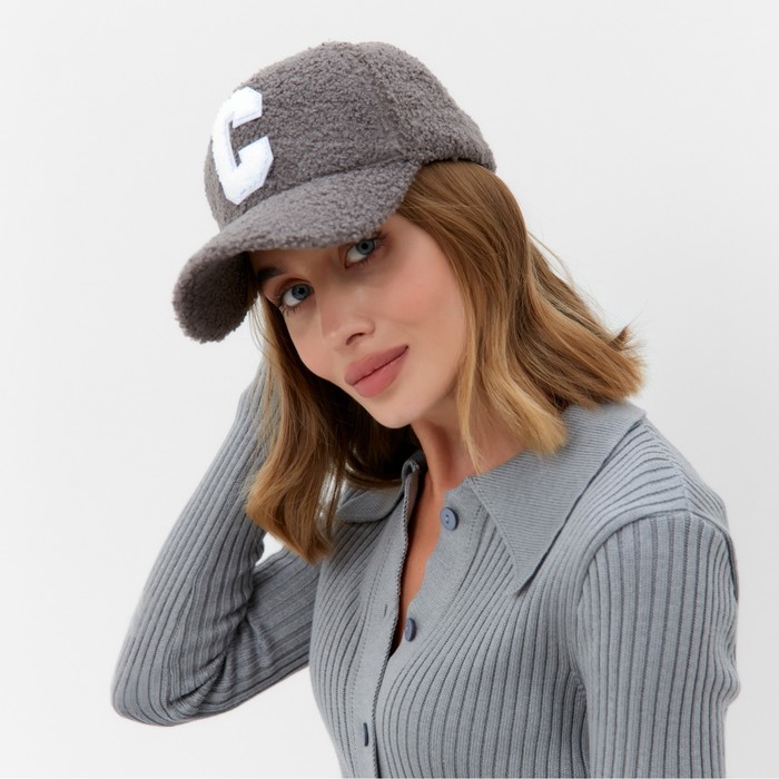 Бейсболка женская тёплая MINAKU барашек, размер 56-58, цвет серый