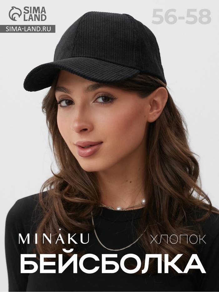 Бейсболка однотоннная MINAKU, чёрная, размер 56-58, вельвет