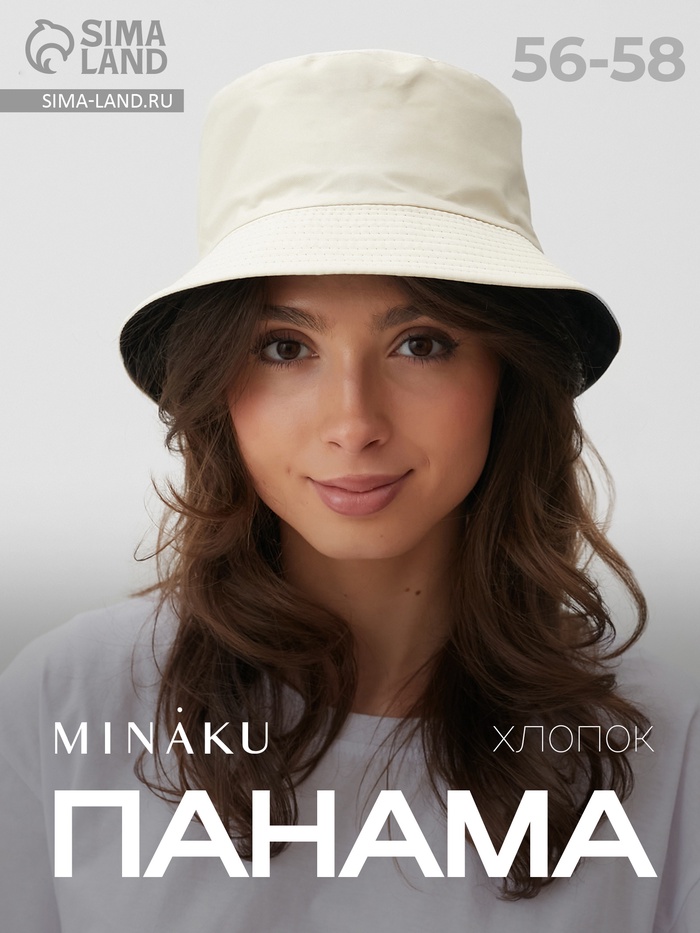 Панама MINAKU с надписями, цвет бежевый, р-р 56--58