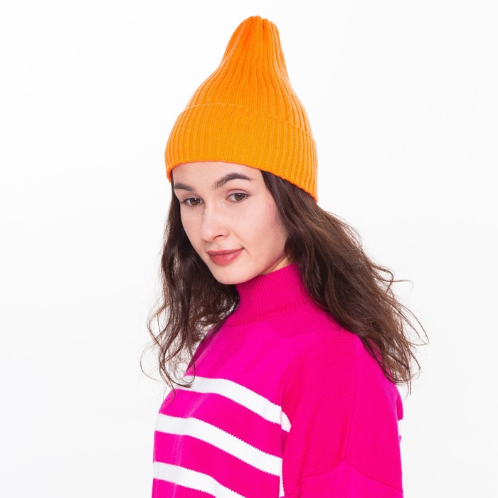 Шапка женская зимняя, цвет оранжевый, размер 52-56