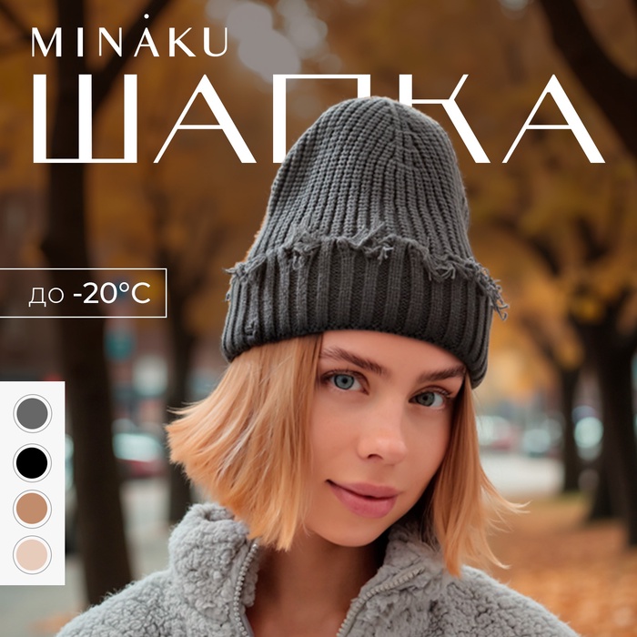 Шапка женская MINAKU, цвет темно-серый, р-р 56-58