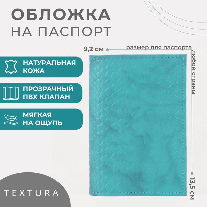 Обложка для паспорта TEXTURA, цвет бирюзовый