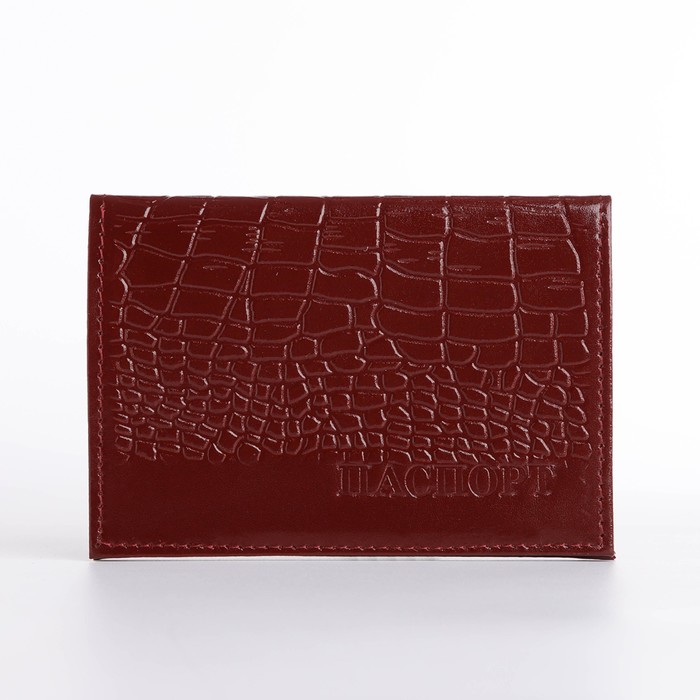 Обложка для паспорта, натуральная кожа, под крокодила, бордовая