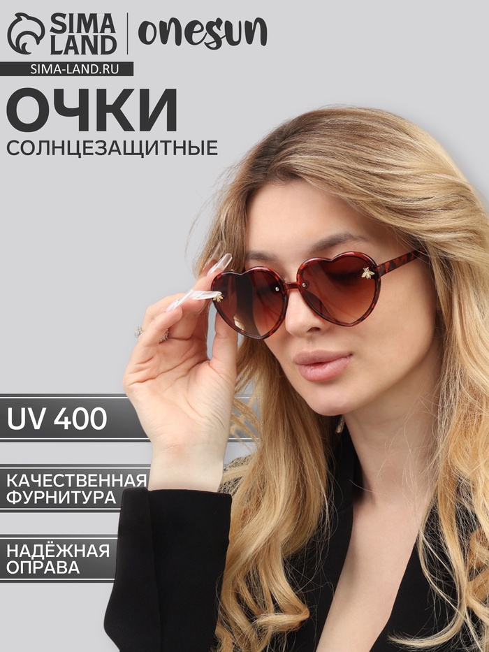 Очки солнцезащитные «OneSun. Сердечки», uv 400, линза 5×6 см, принт леопард