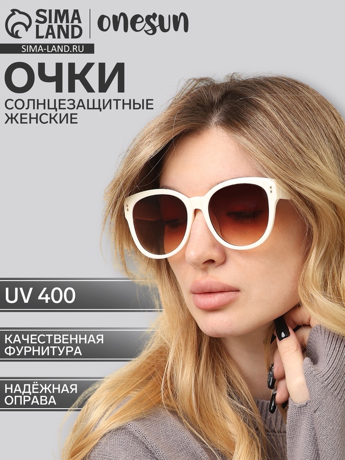 Очки солнцезащитные женские «OneSun. Wayfarer», uv 400, линза 6.5×4.8 см, белый, коричневый