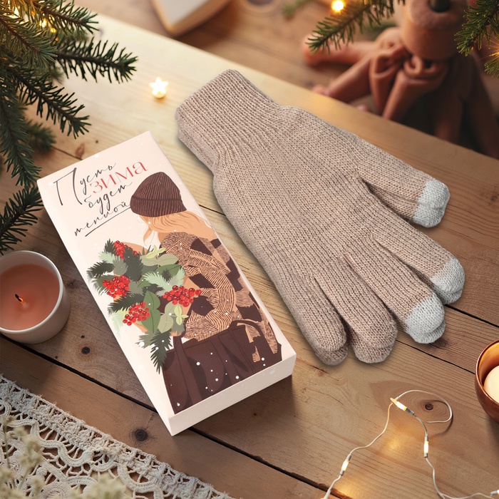 Женские перчатки в подарочной коробке "Зима" размер 19