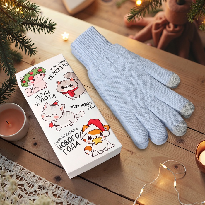 Женские перчатки в подарочной коробке "Котики" размер 19