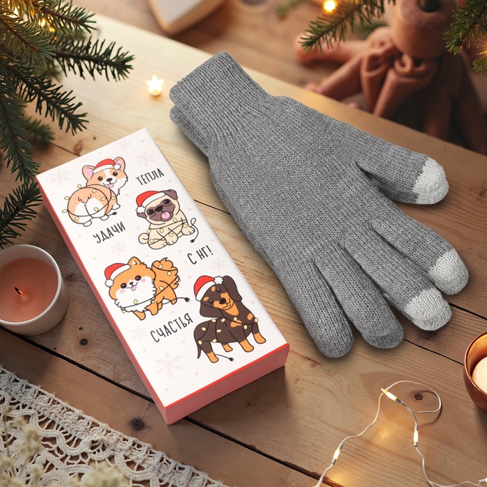 Женские перчатки в подарочной коробке "Песики"размер 19