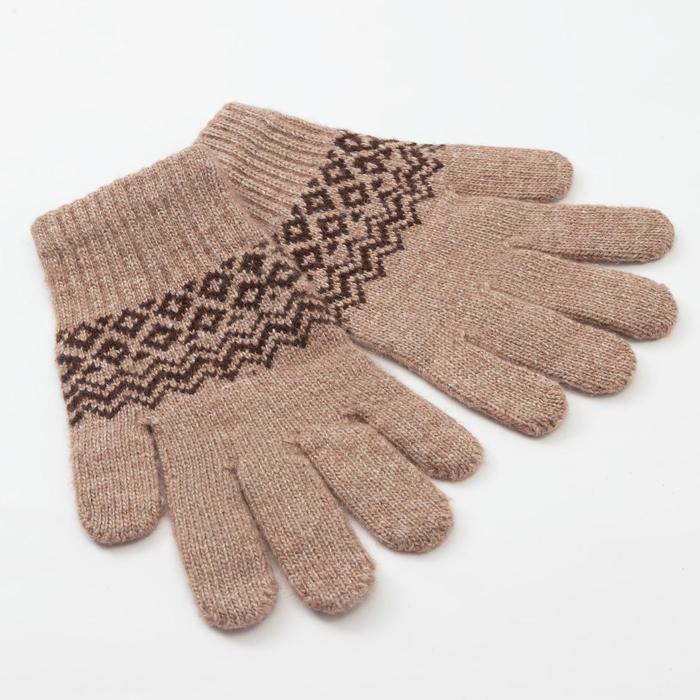 Перчатки женские из монгольской шерсти "Узор", цвет коричневый, размер 17-19 (6,5-7,5)