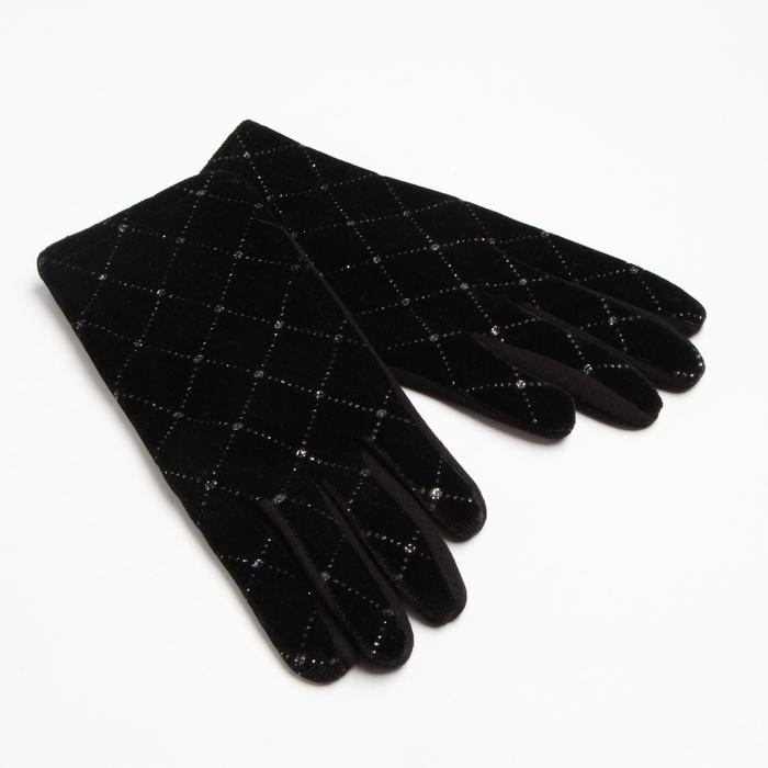 Перчатки женские MINAKU однотонные со стразами, р-р 23 см, цв.чёрный