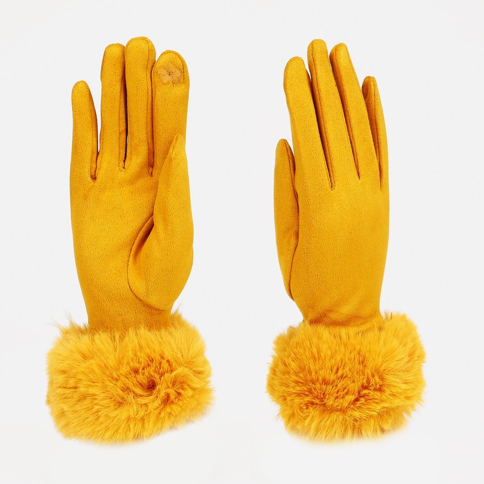 Перчатки женские, безразмерные, без утеплителя, цвет горчичный