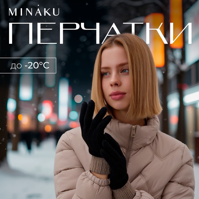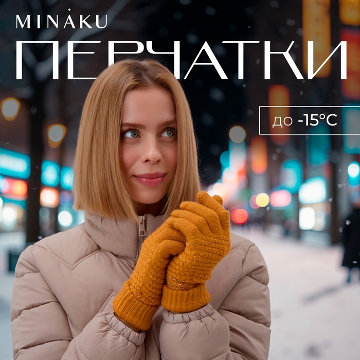 Перчатки женские MINAKU однотонные, 24 см, цв.бежевый