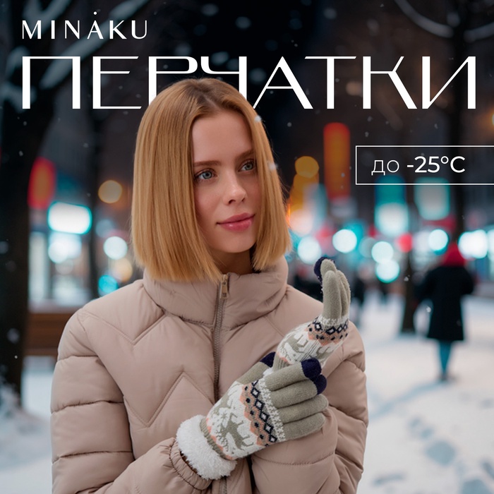 Перчатки женские MINAKU, цвет серый, 21 см