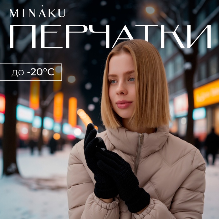 Перчатки женские MINAKU, цвет черный, 25 см