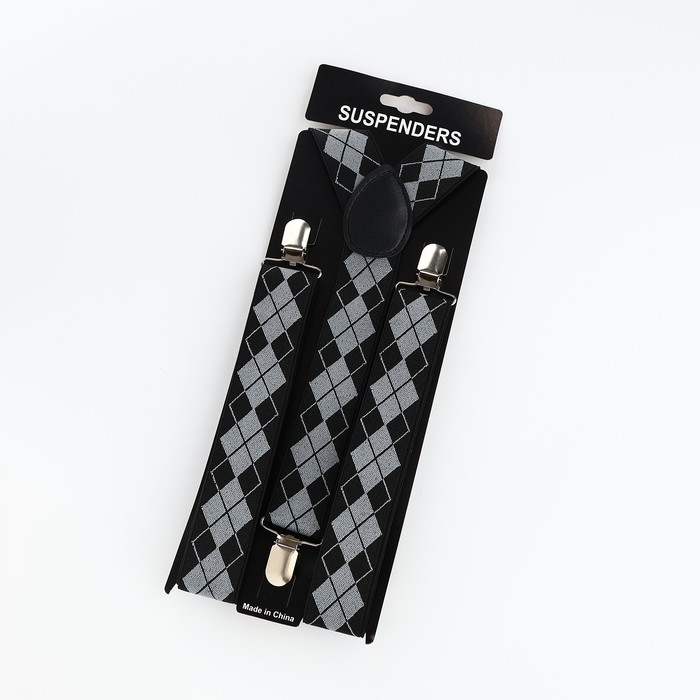 Подтяжки взрослые, ширина 2,5 см, цвет чёрный/серый