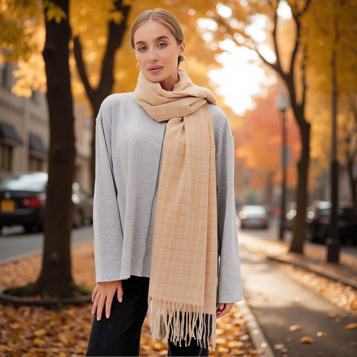 Шарф зимний с кистями MINAKU 65*180 + 8 см цвет бежевый