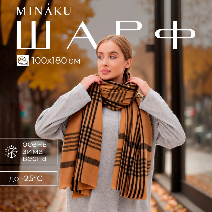 Шарф зимний объемный MINAKU 100*180 + 10 см цвет коричневый