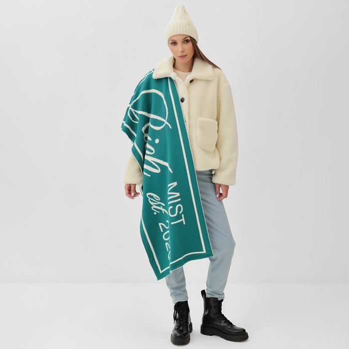 Шарф женский двусторонний MIST зеленый/молочный, размер 47*226см