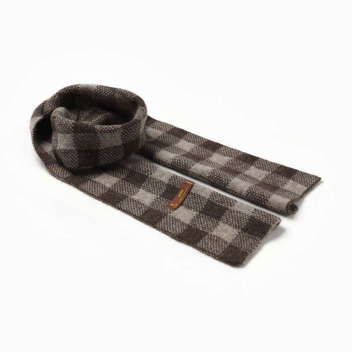 Шарф из монгольской шерсти Шоколадный "Шахматы" , цвет серый/коричневый