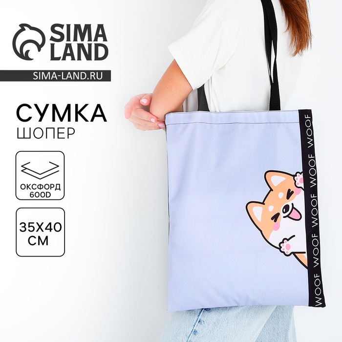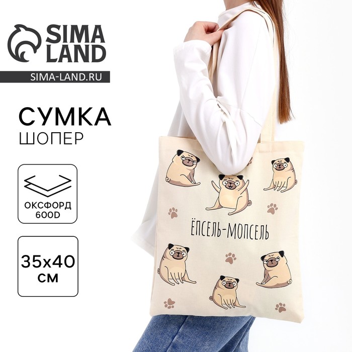 Сумка шопер «Мопс» без молнии, без подклада, бежевая
