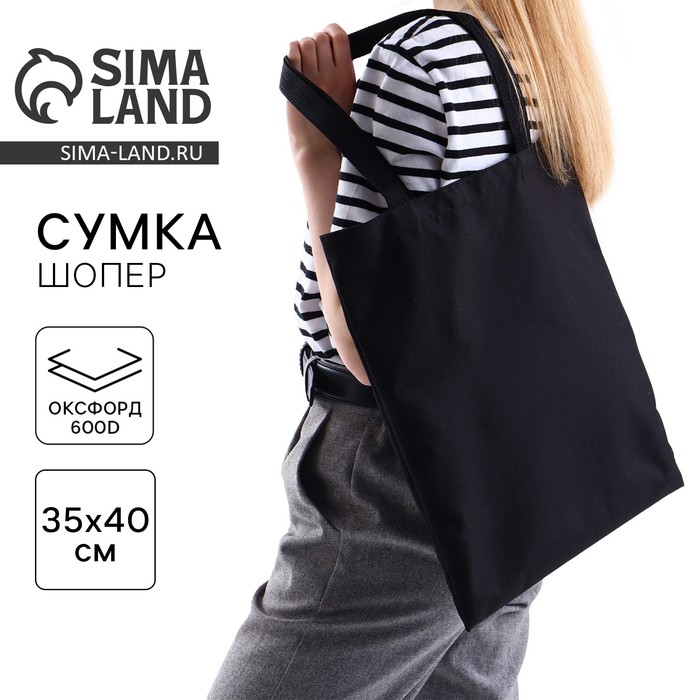 Сумка шопер однотонный, 35×0.5×40 см, оксфорд 600D, 200 г, чёрный