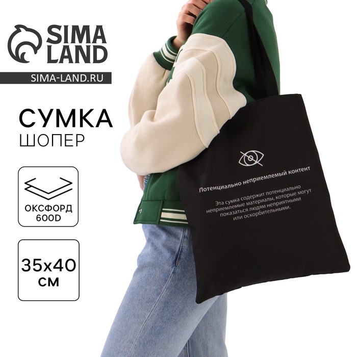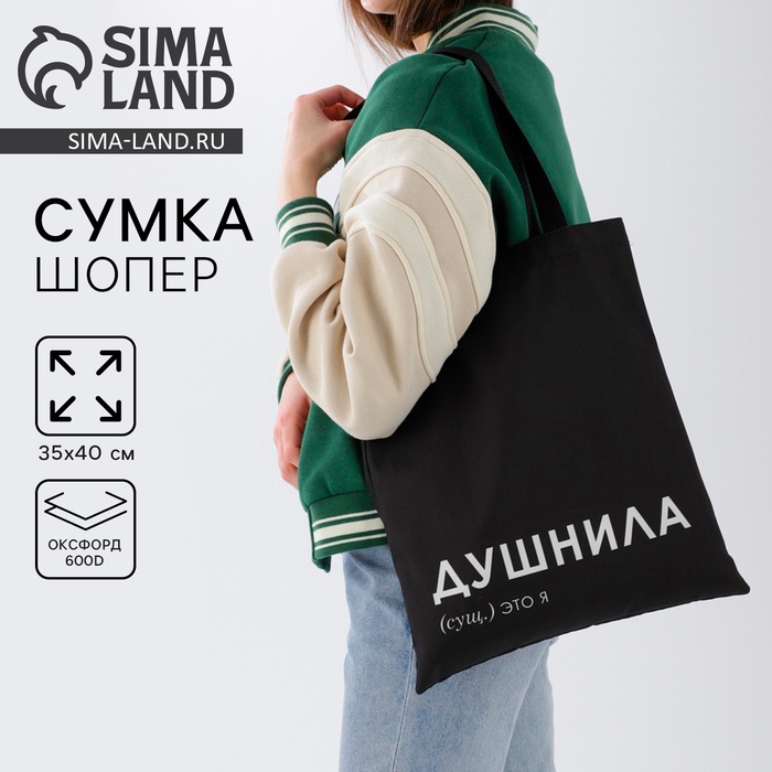 Сумка шопер «Душнила» 35×0.5×40, без молнии, без подклада, чёрный