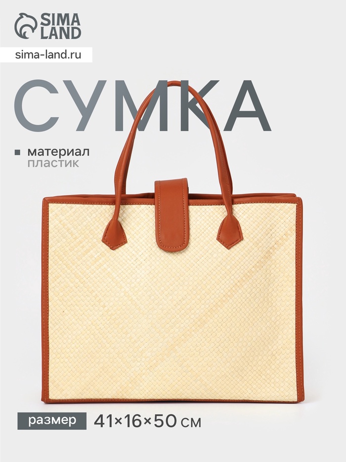 Сумка плетёная на застёжке из пандана, 41×16×50 см, бежево-коричневая