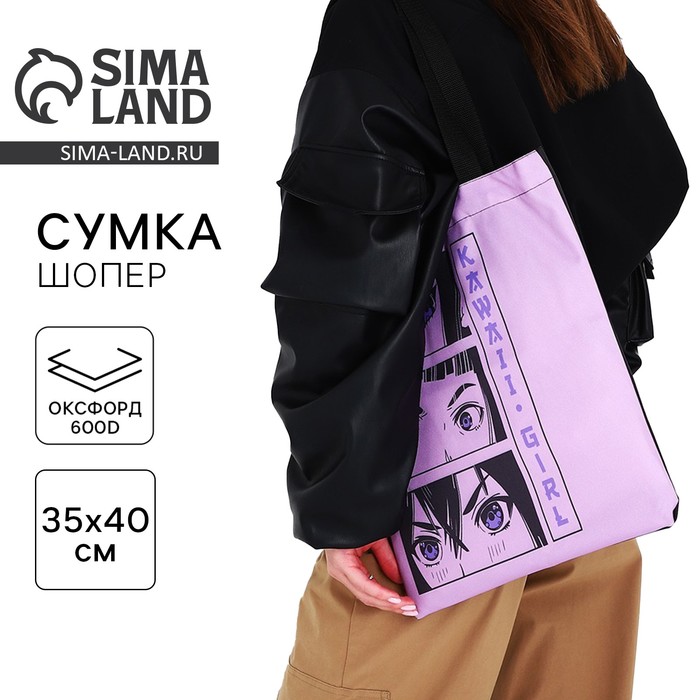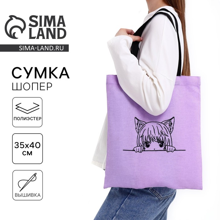 Сумка шопер «Девочка», 35×0.5×40 см, сиреневый