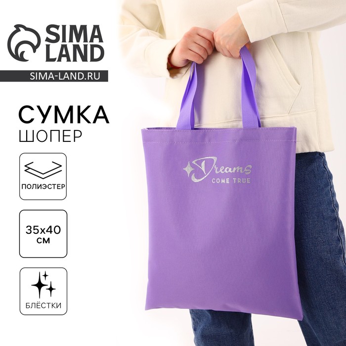 Сумка шопер Dreams come true, без молнии, без подклада, сиреневая