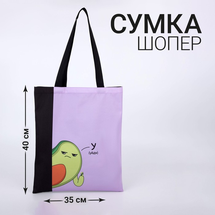 Сумка шопер «Авокадо» 35 х 0,5 х 40, отд без молнии, без подклада, черная
