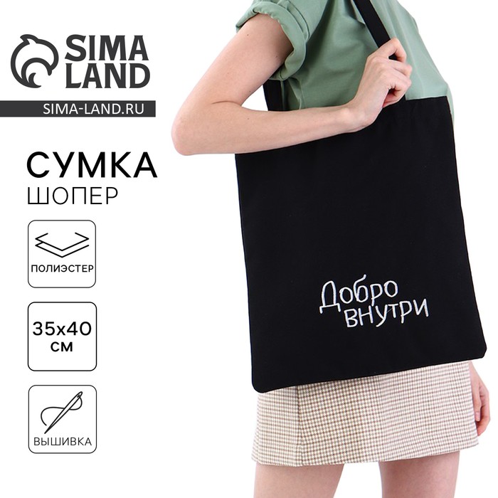 Сумка шопер «Добро внутри», 35×0.5×40 см, вышивка, чёрный