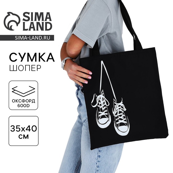 Шопер «Кеды», 35х0.5х40 см, отдел без молнии, без подклада, чёрный